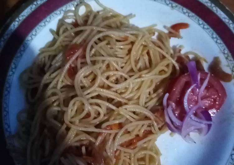 Spaghetti in sauce #endofyearchallenge. Quick and easy homemade spaghetti sauce with tomatoes, onions, garlic, basil and oregano. Add your favorite vegetables and use fresh herbs if you have them.. Spicy Spaghetti Sauce Recipes on Yummly