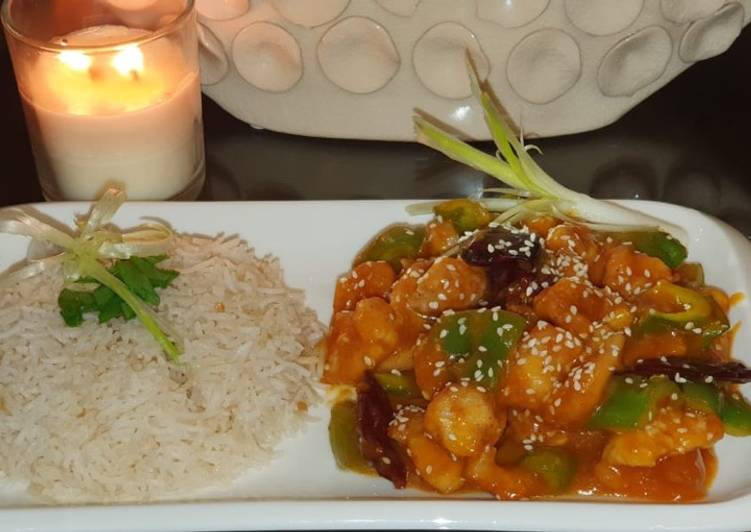 - Serve hot sesame mango chicken with garlic rice 😋💞.